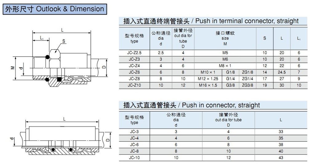 一、JC系列插入式管接頭,適用于連接硬質(zhì)、半硬質(zhì)尼龍管、塑料管,最大工作壓力為1.0MPa。該系列管接頭安裝方便,密封可