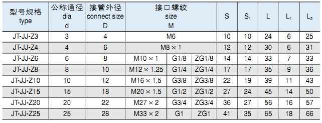 一、JT系列卡套式管接頭適用于有色金屬管,編織尼龍管的連接。最大工作壓力為1.0MPa。