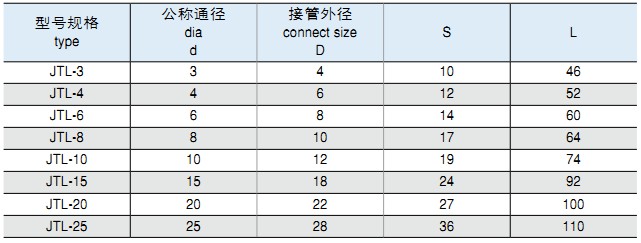 安裝及應(yīng)用 一、JT系列卡套式管接頭適用于有色金屬管,編織尼龍管的連接。最大工作壓力為1.0MPa。 外形尺寸 |