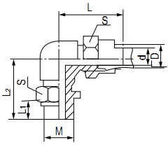 • 標(biāo)記示例: ①:鎖母式三通終端管接頭 公稱通徑 Ø6MM JSM-3T-Z6 M10×1