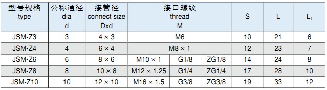 一、JSM系列鎖母式管接頭,適用于連接尼龍管、塑料管,最大工作壓力為1.0MPa。該系列管接頭具有使用方便,安裝牢固等優(yōu)點。