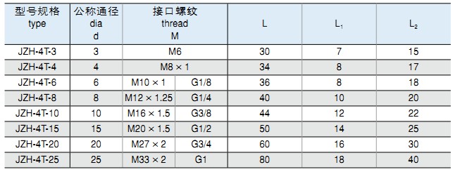 ![]() 安裝及應(yīng)用 JZH系列氣動管接頭,是一種新型的組合式氣動管接頭,最大工作壓力為1.0MPa.這種管接頭是由各種不同的接頭、接頭體和一個終端管座組合而成的。通過這三部分的組合,可以把同個管接頭組合成具有各種不同連接方式和不同公稱通徑的組合式管接頭。 外形尺寸 |
