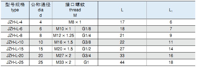 ![]() 安裝及應(yīng)用 JZH系列氣動(dòng)管接頭,是一種新型的組合式氣動(dòng)管接頭,最大工作壓力為1.0MPa.這種管接頭是由各種不同的接頭、接頭體和一個(gè)終端管座組合而成的。通過這三部分的組合,可以把同個(gè)管接頭組合成具有各種不同連接方式和不同公稱通徑的組合式管接頭。 外形尺寸 |