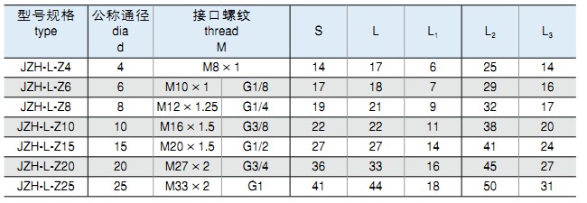 安裝及應(yīng)用 JZH系列氣動管接頭,是一種新型的組合式氣動管接頭,最大工作壓力為1.0MPa.這種管接頭是由各種不同的接頭、接頭體和一個終端管座組合而成的。通過這三部分的組合,可以把同個管接頭組合成具有各種不同連接方式和不同公稱通徑的組合式管接頭。 外形尺寸 |