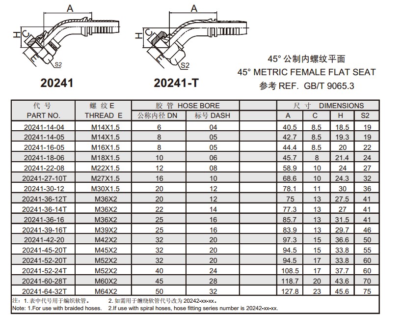20241 45°公制內(nèi)螺紋平面 扣壓式軟管接頭