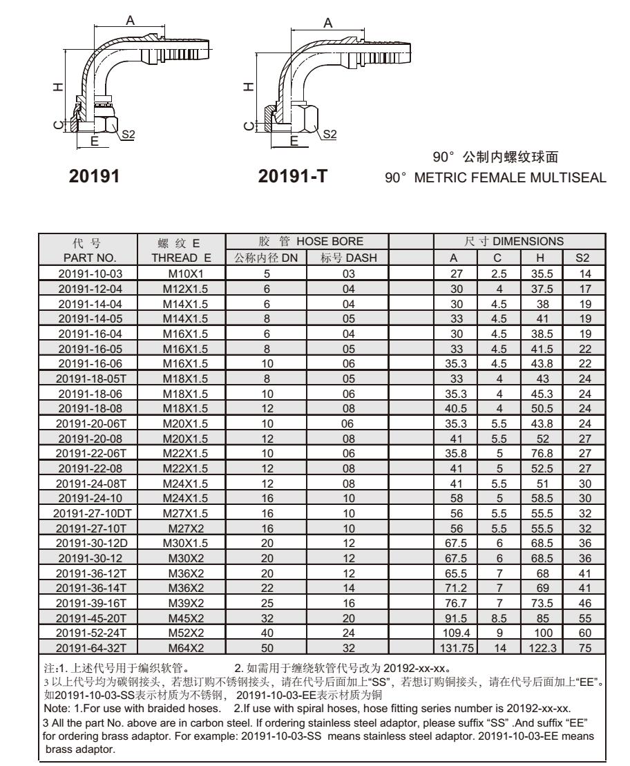 20191 90°公制內(nèi)螺紋球面 扣壓式軟管接頭