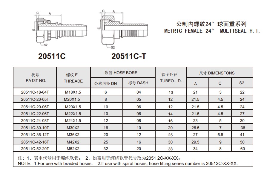 20511C 公制內(nèi)螺紋24°球面重系列