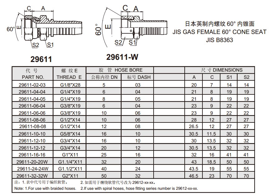 29611 日本英制內(nèi)螺紋60°內(nèi)錐面