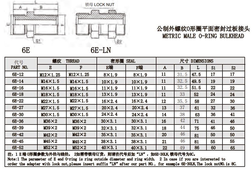 6E 6E-LN 公制外螺紋O形圈平面密封過(guò)板接頭