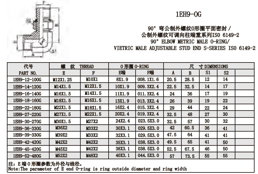1EH9-OG 90°彎公制外螺紋O形圈平面密封/ 公制外螺紋可調(diào)向柱端重系列IS0 6149-2