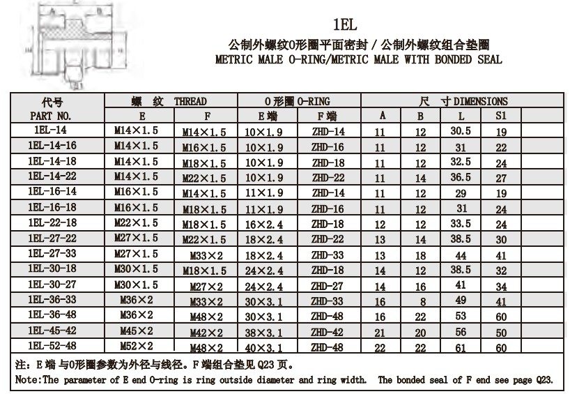 1EL 公制外螺紋O形圈平面密封/公制外螺紋組合墊圈