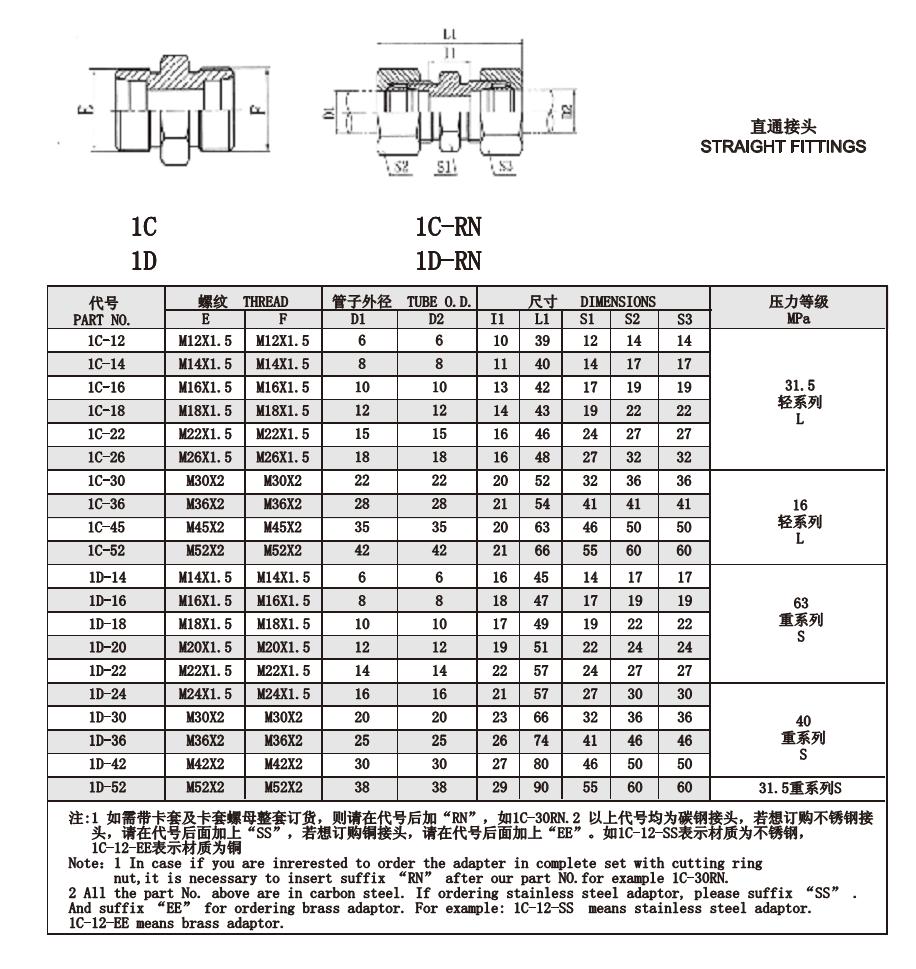 1C 1D 直通接頭