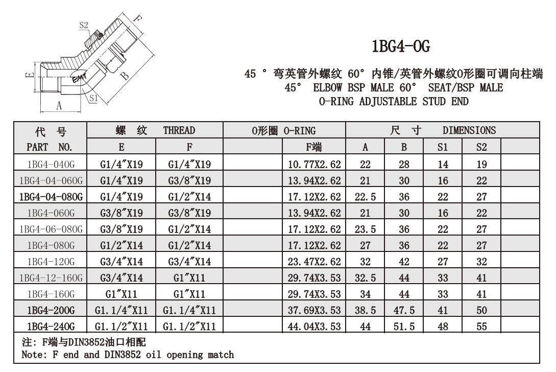 1BG4-OG 45 °彎英管外螺紋 60°內(nèi)錐/英管外螺紋O形圈可調(diào)向柱端