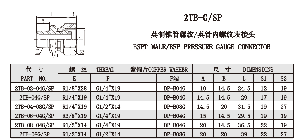 2TB-G/SP 英制錐管螺紋/英管內(nèi)螺紋表接頭
