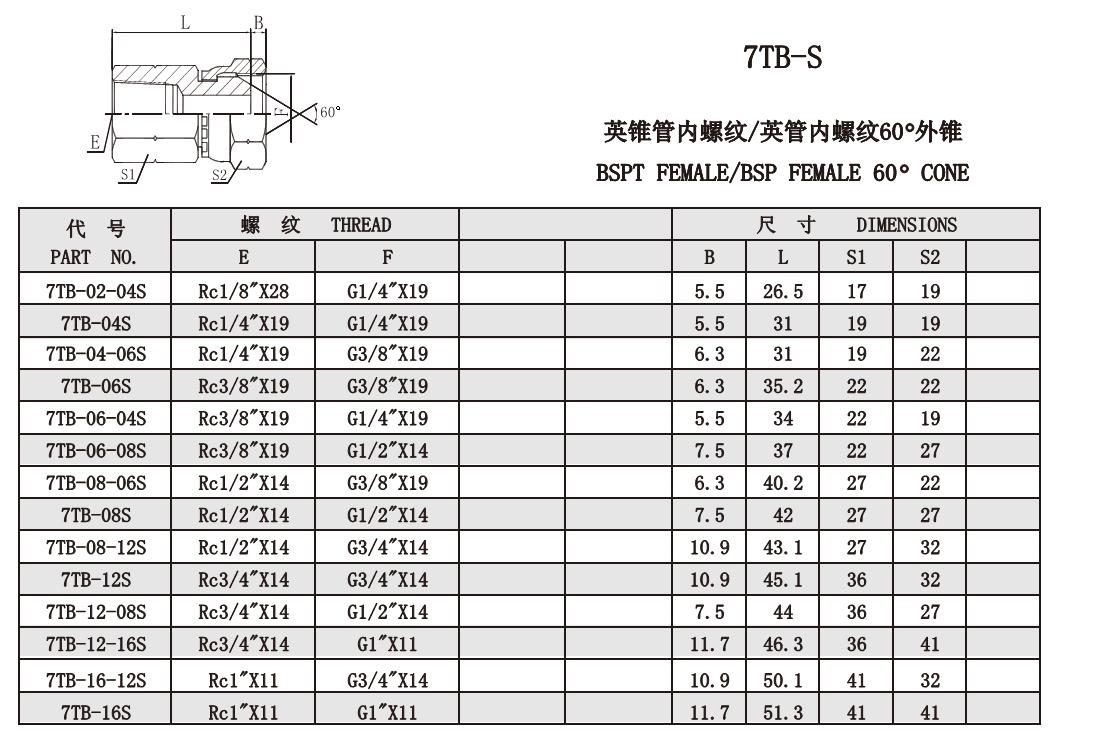 7TB-S 英錐管內(nèi)螺紋/英管內(nèi)螺紋60°外錐