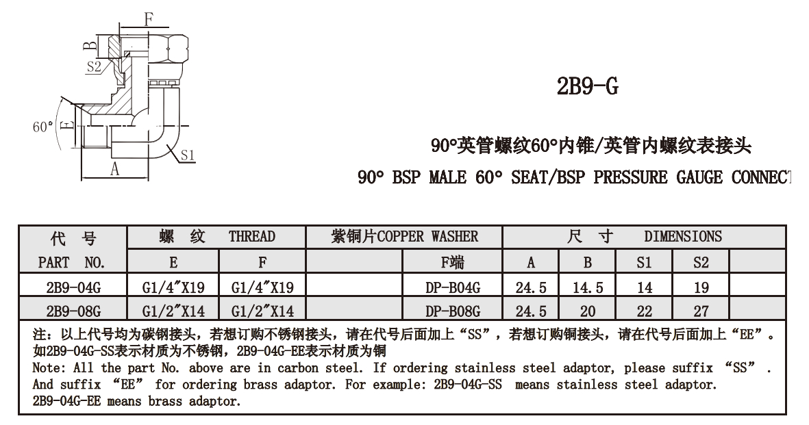 2B9-G 90°彎英管外螺紋60°內(nèi)錐/英管內(nèi)螺紋表接頭