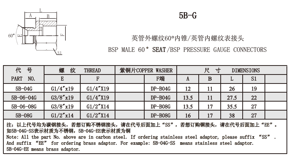 5B-G 英管外螺紋60°內(nèi)錐/英管內(nèi)螺紋表接頭