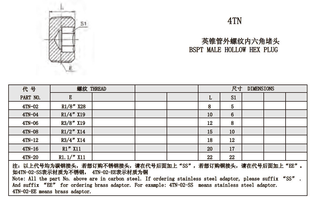4TN 英錐管外螺紋內(nèi)六角堵頭.