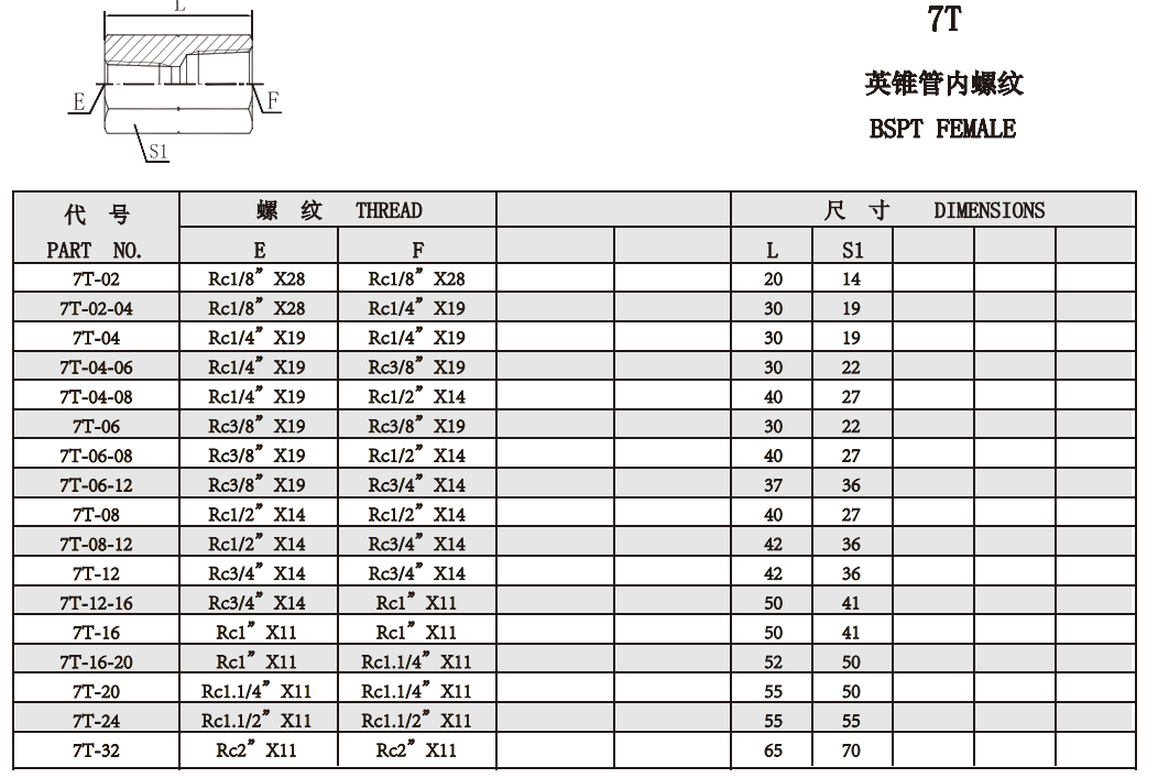 7T 英錐管內(nèi)螺紋