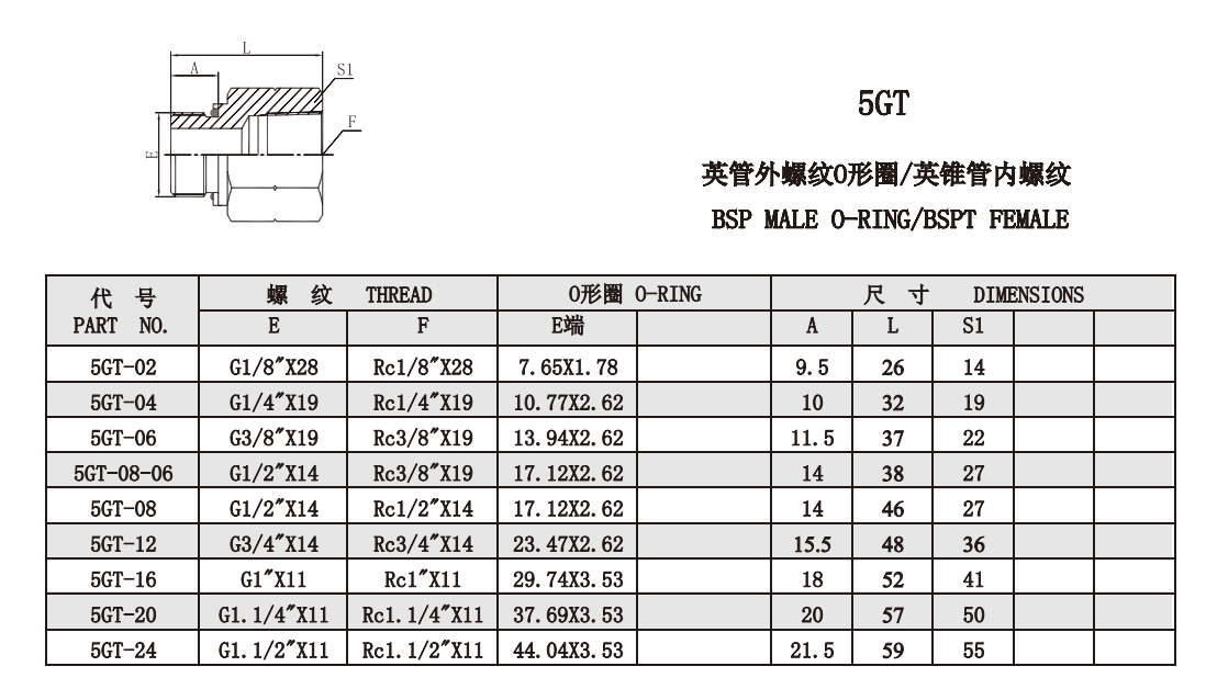 5GT 英錐管外螺紋O型圈/英錐管內(nèi)螺紋