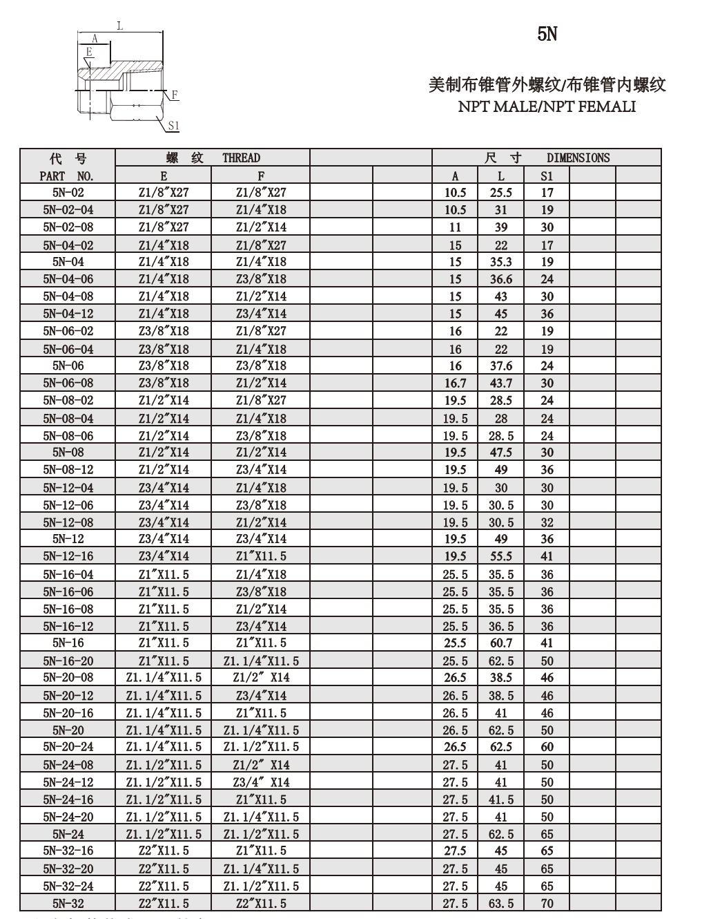 5N 美制布錐管外螺紋/布錐管內(nèi)螺紋
