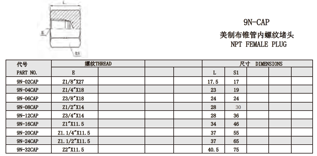 9N-CAP 美制布錐管內(nèi)螺紋堵頭