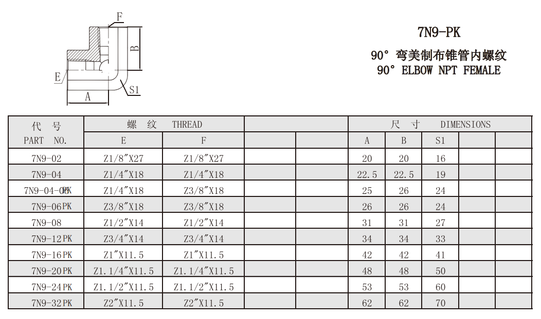 7N9-PK 90°彎美制布錐管內(nèi)螺紋