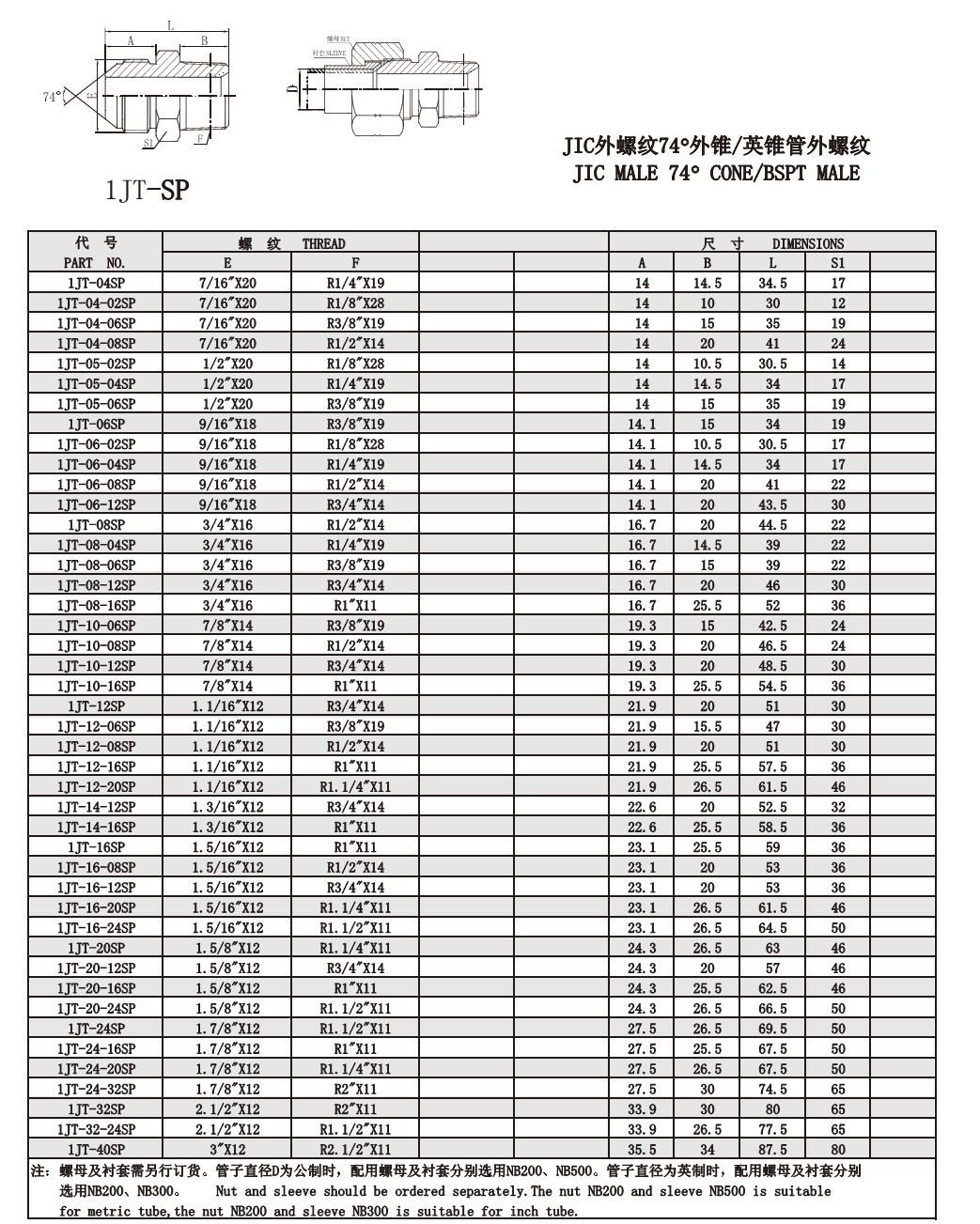 1JT-SP JIC外螺紋74°外錐/英錐管外螺紋