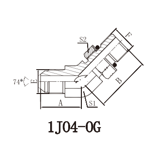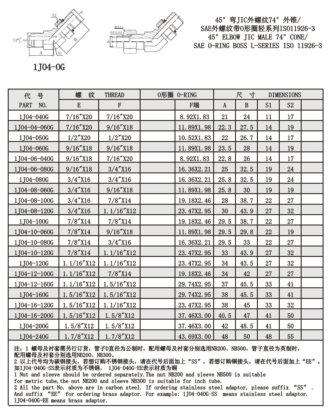 1J04-OG 45°彎JIC外螺紋74°外錐/ SAE外螺紋帶O形圈輕系列ISO11926-3