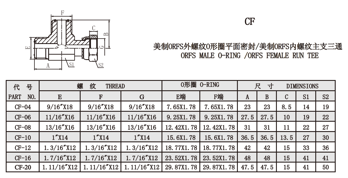 CF 美制ORFS外螺紋O形圈平面密封/美制ORFS內(nèi)螺紋主支三通