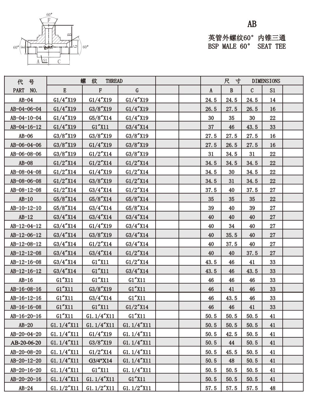 AB 英管外螺紋60°內(nèi)錐三通
