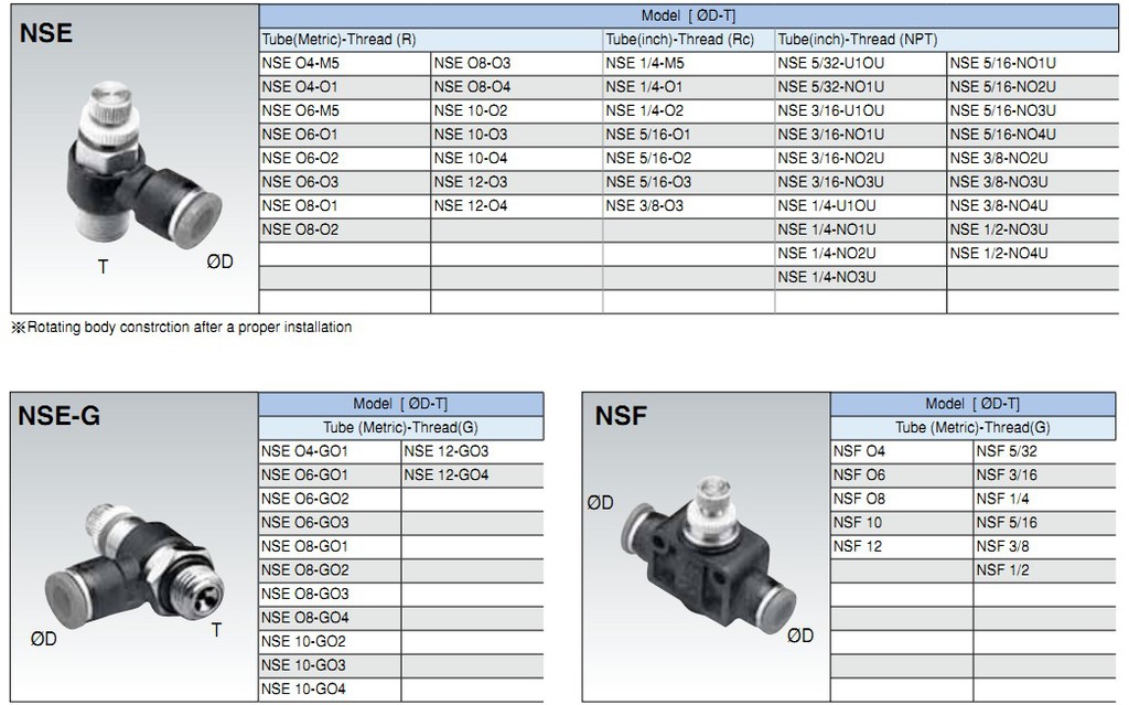 氣動(dòng)接頭 快插式 NSE系列,為單向節(jié)流閥結(jié)構(gòu),通過(guò)調(diào)節(jié)氣缸排氣流量達(dá)到氣缸調(diào)速目的,采用快速連接設(shè)計(jì),拆卸方便。
