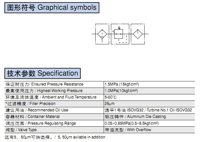 調(diào)壓范圍 / Pressure Regulating Range 0.05~0.85MPa(0.5~8.5kgf/cm2)