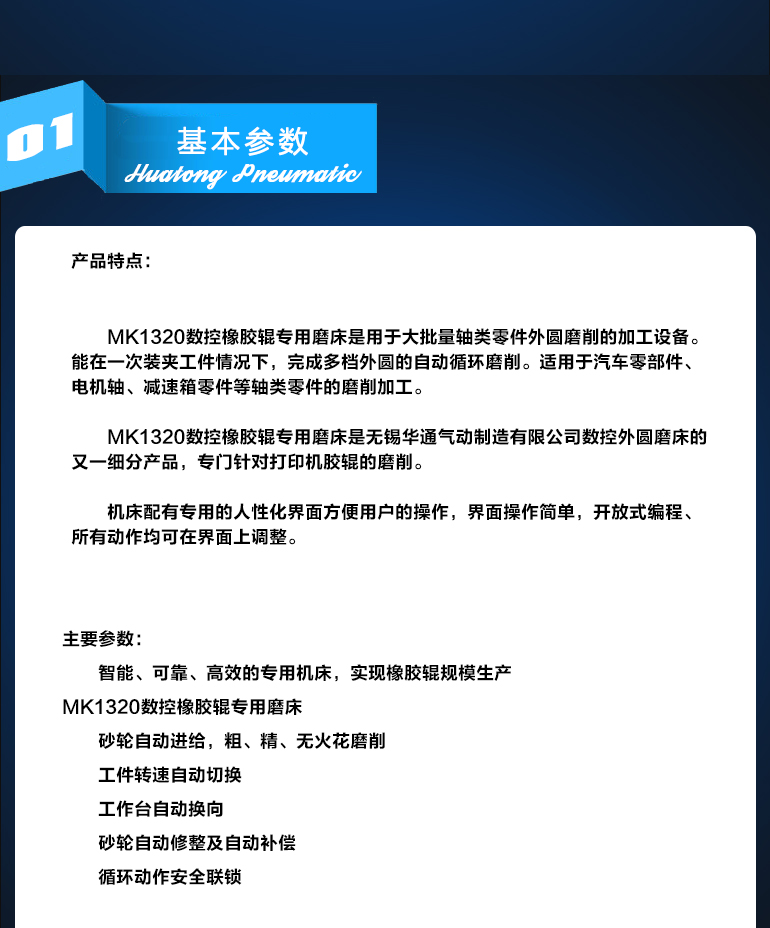 MK1320數(shù)控橡膠輥專用磨床,膠輥磨床,膠輥研磨機(jī)是用于大批量軸類零件外圓磨削的加工設(shè)備。能在一次裝夾工件情況下,完成多檔外圓的自動循環(huán)磨削。適用于汽車零部件、電機(jī)軸、減速箱零件等軸類零件的磨削加工。