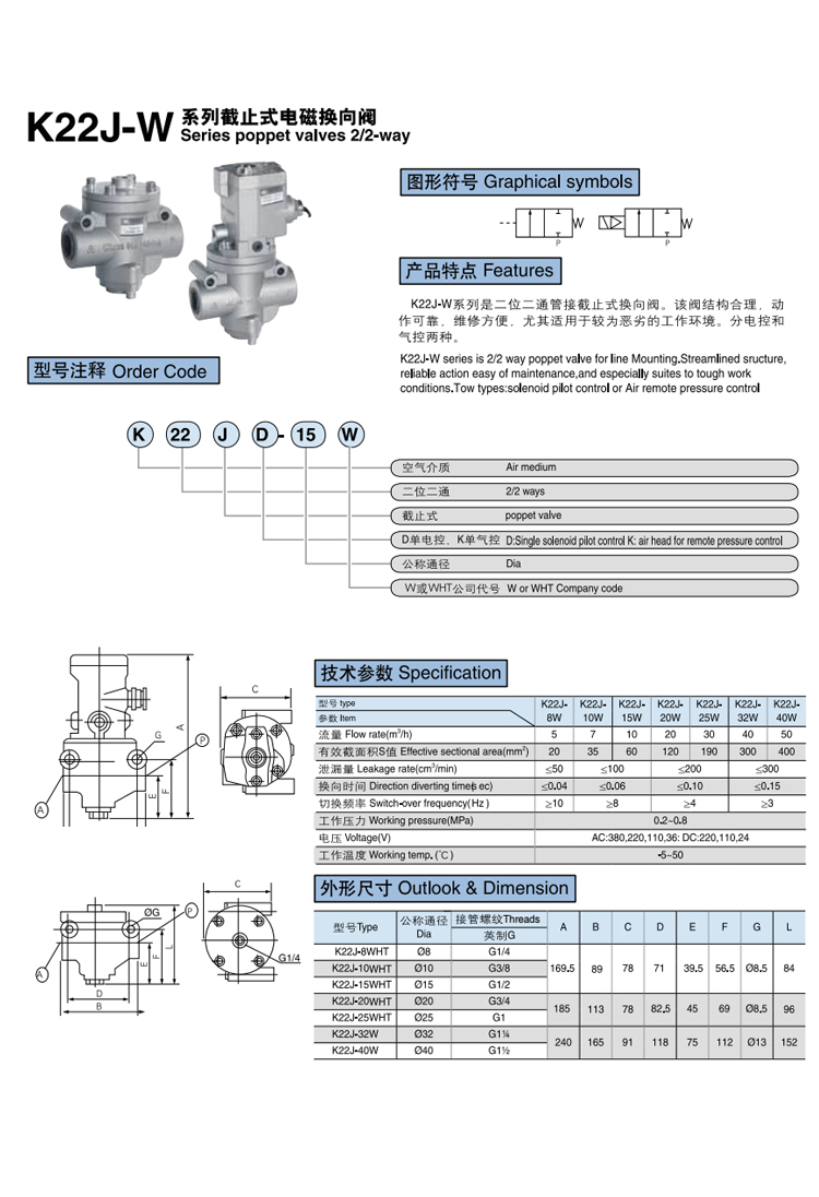 K22JD-WF系列截止式電磁閥 K22JD-WF系列是二位二通管接截止式換向閥方頭無錫單聯(lián)閥。該閥結(jié)構(gòu)合理,動作可靠,維修方便,尤其適用于較為惡劣的工作環(huán)境。分電控和氣控兩種。