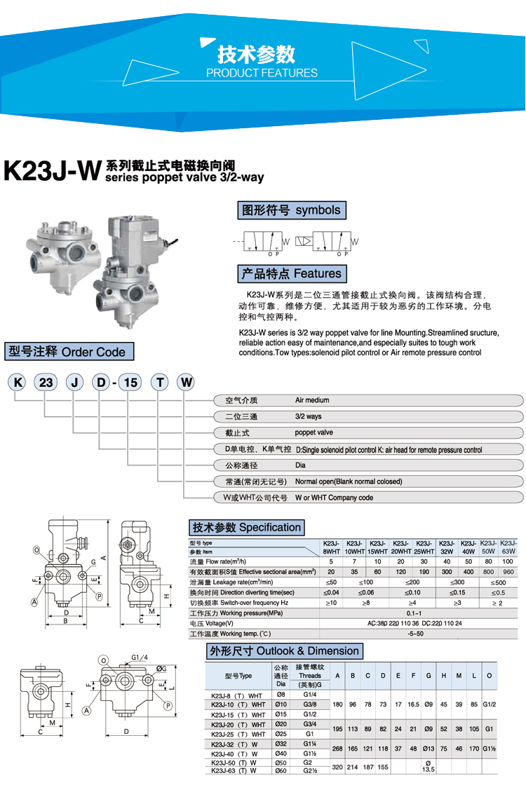 華通氣動(dòng)K23JD-50-63WHT二位三通截止式電控?fù)Q向閥電磁閥,K23JD-W大口徑2寸2-1/2寸氣動(dòng)電磁換向閥