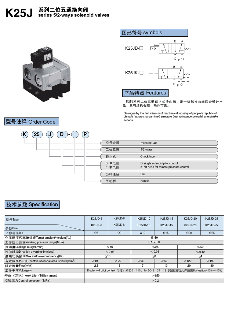 截止式換向閥二位五通 K25JD-W系列,可提供定制