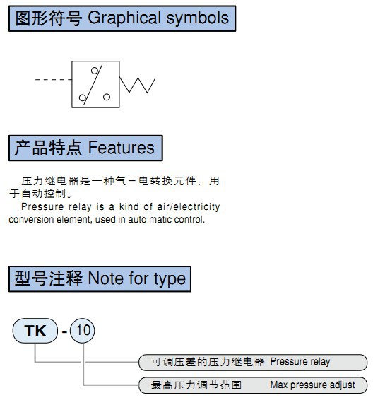 華通氣動 壓力繼電器 TK-10,壓力繼電器是一種氣-電轉(zhuǎn)換元件,用于自動控制。